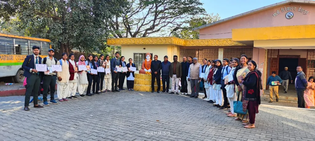 शुक्रवार को राष्ट्रीय सेवा योजना मारवाड़ी महाविद्यालय के द्वारा स्वामी विवेकानंद प्रेक्षागृह में राष्ट्रीय युवा दिवस के अवसर पर एक कार्यक्रम का आयोजन किया गया । इस अवसर पर महाविद्यालय के प्राचार्य डॉ मनोज कुमार के द्वारा स्वामी विवेकानंद की प्रतिमा पर माल्यार्पण के साथ कार्यक्रम की शुरुआत की गई। वहीं नर सेवा ही नारायण सेवा विषय पर निबंध प्रतियोगिता, सशक्त भारत विषय पर पेंटिंग प्रतियोगिता तथा विकसित भारत @2047 विषय पर भाषण प्रतियोगिता का आयोजन किया गया। प्रतियोगिताओं के पश्चात सभी विजेताओं को प्रशस्ति पत्र और स्वामी विवेकानंद से संबंधित पुस्तकें देकर सम्मानित किया गया। वहीं प्राचार्य डॉ मनोज कुमार ने छात्रों को संबोधित कर कहा कि चिर युवा स्वामी विवेकानंद का व्यक्तित्व और कृतित्व भारत का गौरव तथा हर भारतीय के लिए प्रेरणा के स्रोत है। वहीं कार्यक्रम का संचालक महाविद्यालय के एन एस एस कार्यक्रम पदाधिकारी प्रोफेसर जय प्रकाश रजक ने किया। और धन्यवाद ज्ञापन एन एस एस कार्यक्रम पदाधिकारी अनुभव चक्रवर्ती के द्वारा किया गया।
