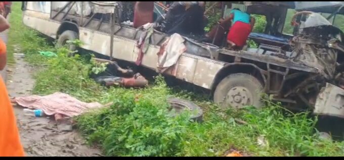 देवघर जिले के मोहनपुर प्रखंड जमुनिया चौक के निकट बस और ट्रक के बीच जोरदार टक्कर होने से बस में सवार 6 बोल...