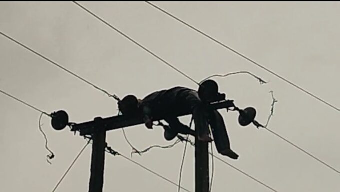 रांची | ओरमांझी थाना क्षेत्र के आनंदी में सुबह लगभग 8 बजे 11000 वोल्ट के खंभे पर बिजली का लाइन बना रहे शंकर...