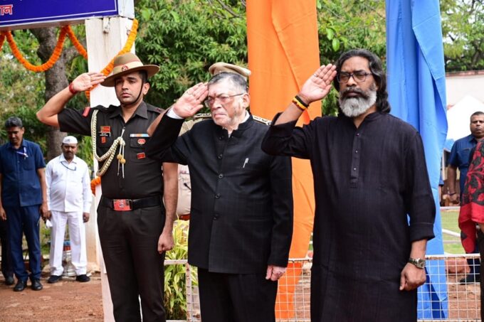 झारखंड : राज्यपाल संतोष कुमार गंगवार और मुख्यमंत्री हेमंत सोरेन ने झारखंड जगुआर मुख्यालय, रांची में शहीद जवान सुनील धान के पार्थिव शरीर...