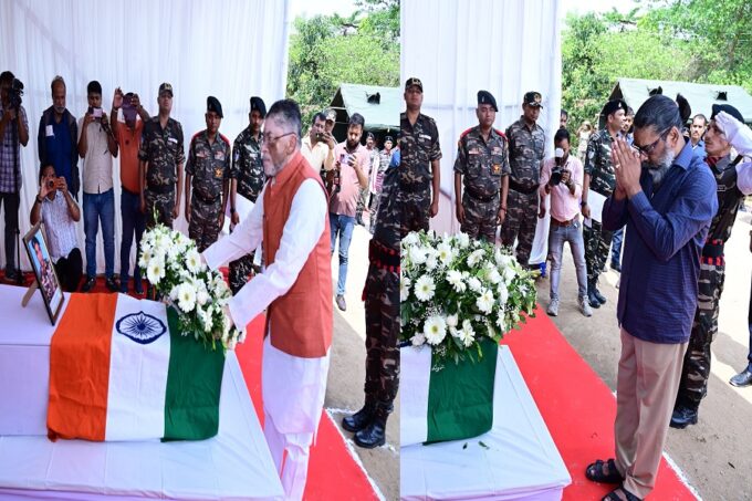 धुर्वा स्थित 133 बटालियन सीआरपीएफ मुख्यालय पहुंचकर शहीद सीआरपीएफ जवान सुनील कुमार मंडल को राज्यपाल संतोष कुमार गंगवार और मुख्यमंत्री हेमन्त सोरेन ने...