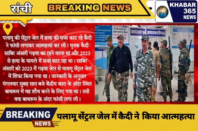 पलामू की सेंट्रल जेल में हत्या की सजा काट रहे कैदी ने फांसी लगाकर आत्महत्या कर ली। मृतक कैदी साबिर अंसारी गढ़वा का...
