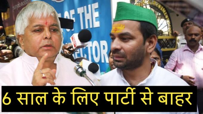 बिहार राष्ट्रीय जनता दल (राजद) के मुखिया लालू प्रसाद यादव ने अपने बड़े बेटे तेजप्रताप यादव पर सख्त कार्रवाई करते हुए उन्हें छह...