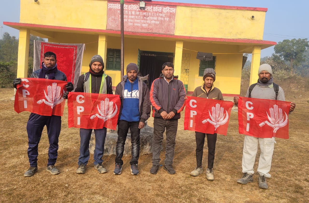 यूनियन कार्यालय पीटीपीएस में भारतीय कम्युनिस्ट पार्टी पतरातू प्रखंड के पश्चिमी क्षेत्र के कार्यकर्ताओं द्वारा भारतीय कम्युनिस्ट पार्टी का 100वां स्थापना दिवस मनाया गया जिसमें अंचल मंत्री कामरेड मनोज कुमार महतो उपस्थित रहे सर्वप्रथम संगठन का झंडा तोलन किया गया शहिद बेदी में पुष्प अर्पित किया गया ।
