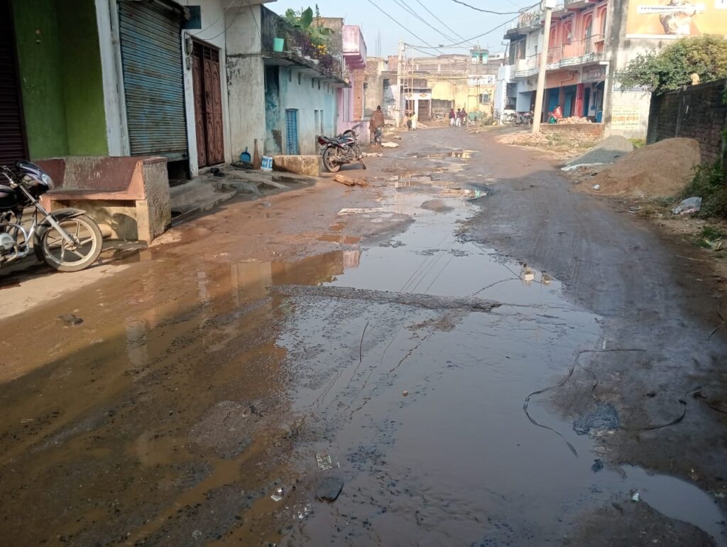 पतरातू से सांकुल जाने वाले सड़क निर्माण के साथ नाली नहीं होने के कारण सड़क हुई जर्जर।