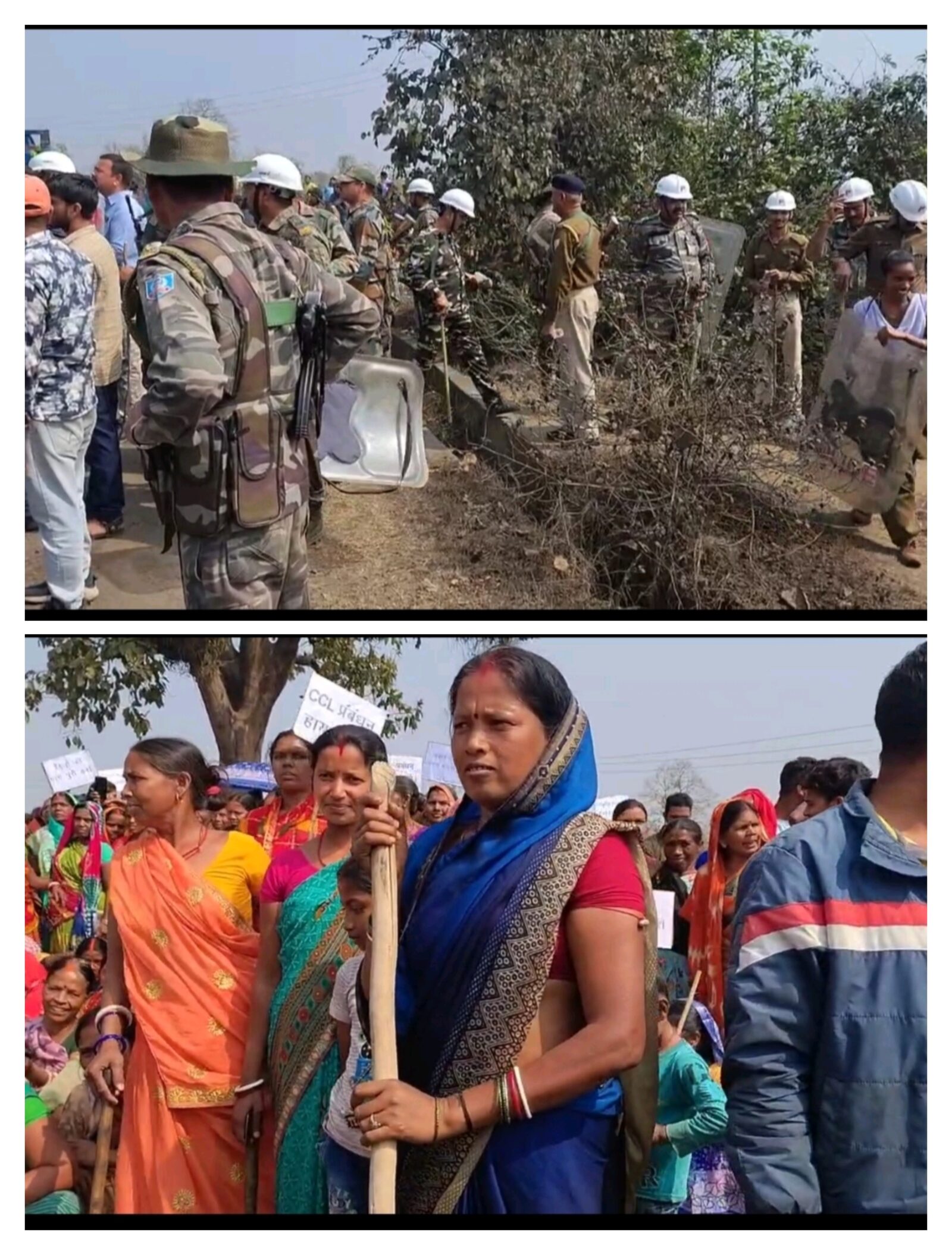 सी सी एल के न्यू के बी पी कोतरे प्रोजेक्ट का भूमि पूजन मे ग्रामीण और प्रशासन आमने-सामने स्थिति गंभीर