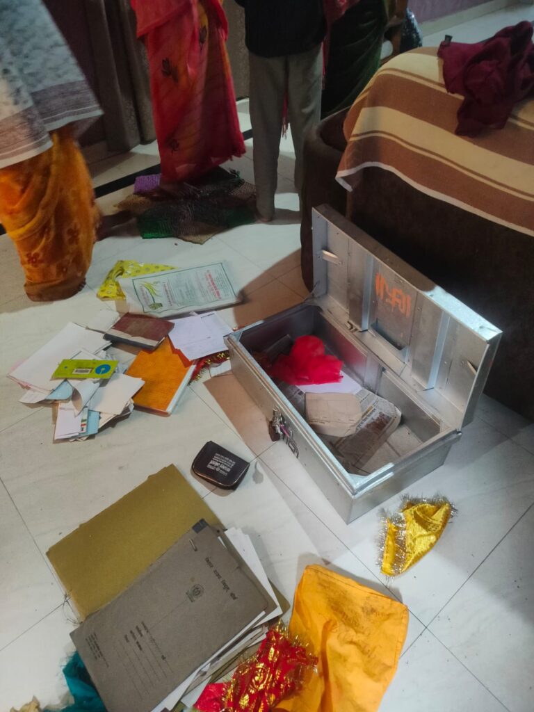 पतरातू थाना अंतर्गत पालु पंचायत के टेरपा गांव निवासी गुलाब साव के घर में लकड़ी के दरवाजा में ड्रिल मारकर घर में रखें बक्से जिसमें सोना और चांदी के गहने रखे हुए थे उसे अज्ञात चोरों द्वारा चोरी कर ली गई लगभग दो से तीन लाख की गहनों की चोरी हुई है वहीं बगल में रखें गोदरेज अलमारी को चोरों ने छुआ भी नहीं बक्सा में रखें कागजों को घर के बाहर फेक दिया, पतरातू पुलिस को इसकी सूचना दे दी गई है। चोरों द्वारा रात को पहले अगल-बगल के घरों में दरवाजे के बाहर कुंडी भी लगा दी थी, वही बल्ब को भी रोशनी ना हो इसलिए बाहर के बल्ब को भी खोल कर रख दिया था। पतरातू पुलिस मौके पर पहुंचकर चोरी की घटना की छानबीन कर रही है। वहीं पतरातू थाना क्षेत्र में कुछ दिन पहले ही सांकुल में भी सोने ,चांदी के गाहने की चोरी हुई थी लेकिन अभी तक इसका खुलासा नहीं हुआ है।
