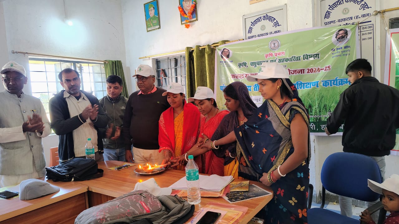 बरकट्ठा :- प्रखंड क्षेत्र के पंचायत सचिवालय कोनहारा खुर्द मे कृषि पशुपालन एवं सहकारिता विभाग के तत्वधान में तीन दिवसीय फसल सुरक्षा कार्यक्रम का पंचायत स्तरीय प्रशिक्षण कार्यक्रम का शुरुआत किया गया। जिसमे मुख्य रूप से हजारीबाग कृषि विभाग से आये कनीय पौधा संरक्षण पदाधिकारी डॉ विना कुमारी टुडू, मुखिया प्रतिनिधि बिरेंद्र शर्मा,पौधा संरक्षण निरीक्षक विजय कुमार साहु, बीटीएम चिंता हरण पाठक, कीट विशेषयक्ष कमलेश कुमार, पौधा संरक्षण प्रभारी कुंदन कुमार, एग्री पोडूसर हीरालाल प्रसाद,मास्टर ट्रेनर साहेबराम सोरेन व सुंदर दास ने सयुक्त रूप से दीप प्रज्वलित कर व फीता काट कर कार्यक्रम की शुरुआत की। जिसमे पंचायत के किसानों को कीटनाशक दवाई का उपयोग कम कर जैविक कृषि पर बल देने हेतु उन्हें प्रशिक्षित किया जाएगा। प्रशिक्षण के माध्यम से किसान यह सीखेंगे की वे अपने खेत में कीटनाशक दवाओं का उपयोग कम से कम कर जैविक तरीके से खेती को अपनाये। प्रशिक्षण के मौके पर लालमोहन प्रसाद, मुनिलाल प्रसाद, कलावती कुमारी,सावित्री देवी, कौशल्या देवी,नीलम कुमारी, गुड़िया देवी, अनीता कुमारी, सुलेखा कुमारी, विनोद कुमार, ललिता देवी, कोलेश्वर सिंह, खगेंद्र प्रसाद, लालधारी प्रसाद , पवन प्रसाद, गीता देवी,अंजू देवी, शोभ देवी, क्रांति कुमारी,सरिता देवी, सोनिया देवी, रेणु देवी,उर्मिला देवी सहित कई किसान प्रशिक्षण कार्यक्रम मे शामिल हुए।