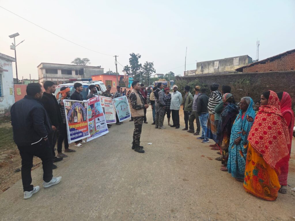 कार्यक्रम में पुलिस टीम ने ग्रामीणों को साइबर क्राइम से होने वाले नुकसान और उससे बचाव के उपाय, अवैध अफीम की खेती के कानूनी परिणाम, यातायात नियमों का अनुपालन, मॉब लिंचिंग से जुड़े कानून, डायन प्रथा प्रतिषेध अधिनियम, मानव तस्करी की पहचान और रोकथाम, तथा नशा मुक्ति के लाभ जैसे महत्वपूर्ण मुद्दों पर विस्तार से जानकारी दी।