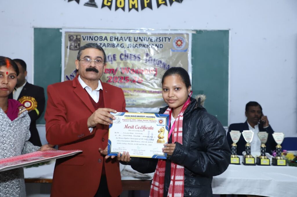 पतरातू । पीटीपीएस कॉलेज में आयोजित दो दिवसीय विनोबा भावे विश्वविद्यालय इंटर कॉलेज चेस टूर्नामेंट 2025 -26 का मंगलवार को समापन हो गया। इस टूर्नामेंट में विश्वविद्यालय के अंतर्गत 9 डिग्री कॉलेज के छात्र-छात्राएं प्रतिभागी के रूप में शामिल हुए।