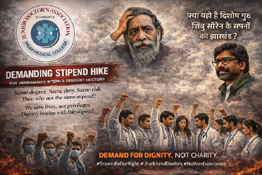 जमशेदपुर स्थित कोल्हान के सबसे बड़े एमजीएम मेडिकल कॉलेज एवं अस्पताल के जूनियर डॉक्टर्स एसोसिएशन के MBBS इंटर्न डॉक्टरों ने बुधवार को राज्य सरकार के समक्ष स्टाइपेंड में भेदभाव का गंभीर मुद्दा उठाया है। इस दौरान MBBS इंटर्न डॉक्टरों ने मुख्यमंत्री से सीधा सवाल किया कि जब झारखंड के इंटर्न डॉक्टर बिहार और पश्चिम बंगाल के इंटर्न की तरह ही 36 घंटे की ड्यूटी, ICU, इमरजेंसी, OPD और पोस्टमार्टम जैसी विभिन्न जिम्मेदारियों को एक साथ निभाते हैं, तो उन्हें कम स्टाइपेंड क्यों दिया जा रहा है?