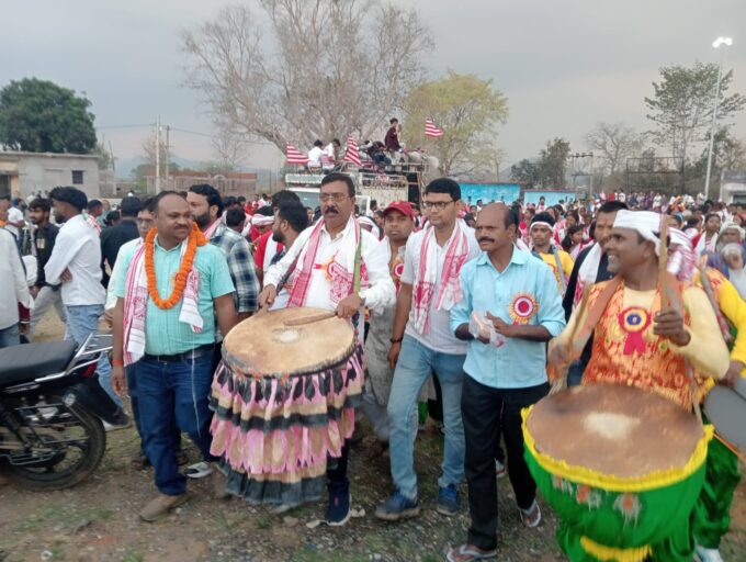 सरहुल के अवसर पर हेसला सरना स्थल में ढोल नगाड़े के साथ की गई पूजा अर्चना ।